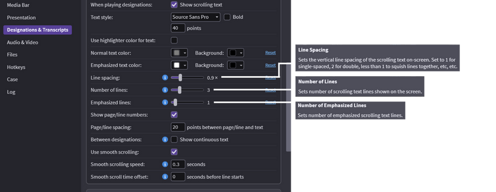 Each section below shows a series of screenshots of OnCue's Preferences for your reference.